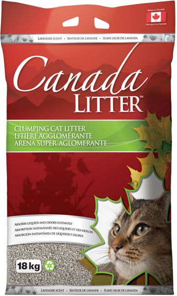 Canada Litter is made from sodium bentonite and is produced in Canada. Bentonite is a mineral clay with the characteristics of expansion, absorption and very low permeability. The principal mineral component is montmorillonite. Fine granulation bentonite reminds cats of their natural environment. Comes with an absorption capacity of 350% (3.5 times its own weight) Canada Litter has a very high agglomerating capacity with huge absorption properties. Moisture clumps instantly, and all one needs do is remove clumps daily to eliminate risk of bacteria that may form in the pan. Perfume made from lavender oils is mild enough for cats cat and was designed as an extra safeguard to control any left over odors in the pan.