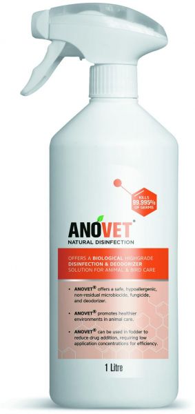 ANOVET® offers the safest, hypoallergenic, non-residual microbiocide & fungicide for animal & birdcare, being safe to also use directly on all animals and their feed or water with no special precautions, residues, or rinse needed.