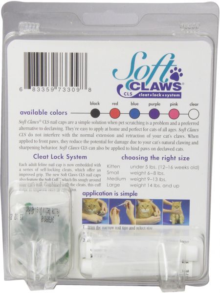 Protect your furniture, your skin, and your kitty all with Soft Claws. Soft Claws blunts your cat's nails to keep your home and family scratch free. They're also exceptionally effective for protecting a cat from over scratching themselves or other pets. The nail caps fit perfectly over your cats' claws, so many cats don't even know they're there. Soft Claws don't interfere with your cat's normal activity like scratching and stretching. Cats can scratch all day without doing any damage. Designed with every cat personality in mind, Soft Claws are available in tons of colors. There are a number of bright solids, shimmering sparkles, or neutrals and clear options to keep your cat happy no matter their sense of fashion. We can't guarantee your kitty's cooperation, but the actual application process is simple. Just add a few drops of the included adhesive to each cap and slide over the nail. They're safe and non toxic and appropriate for long term use. Package contains (1) Soft Claws Feline Nail Caps - 40 Nail Caps and Adhesive for Cats. Application lasts 4-6 weeks. 4 applications included per kit. Safe, non-toxic. Note: Should be used on indoor-only cats. Cats going outside need their claws to help defend themselves.