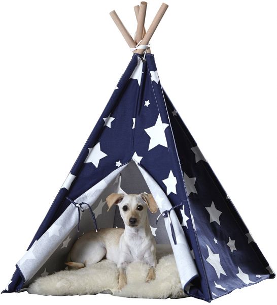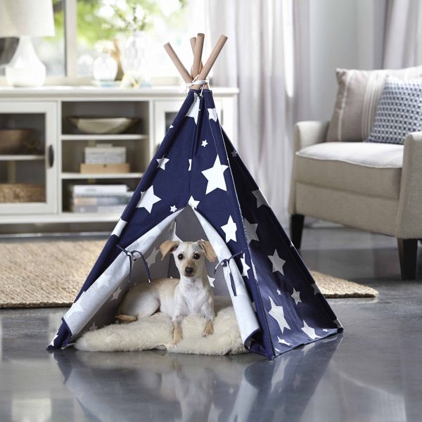 Includes assembly instructions and hardware. Two-flap door opening. Made from eucalyptus hardwood and cotton canvas. Warranty: One year. Assembly required.