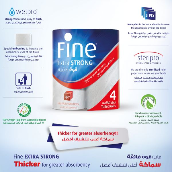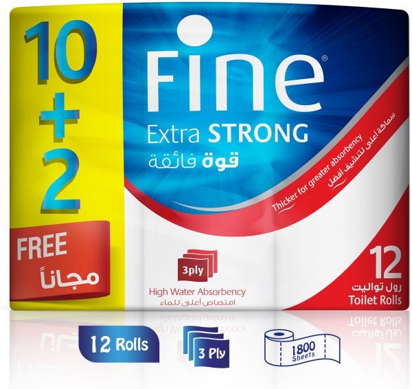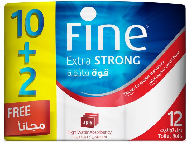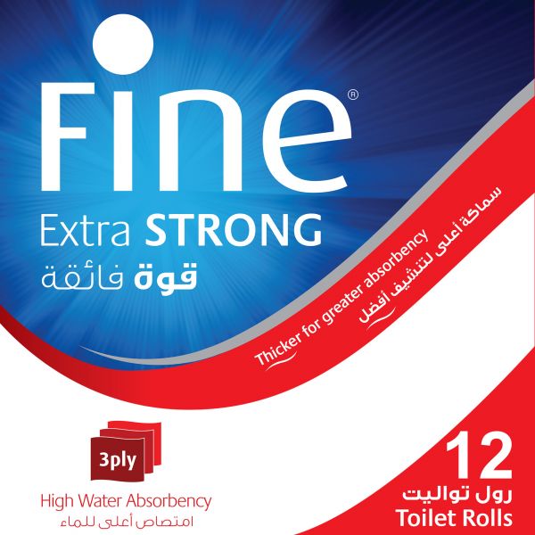 Fine Extra Strong Toilet Tissue Rolls - Pack of 12 Rolls, 150 Sheets x 3 Ply