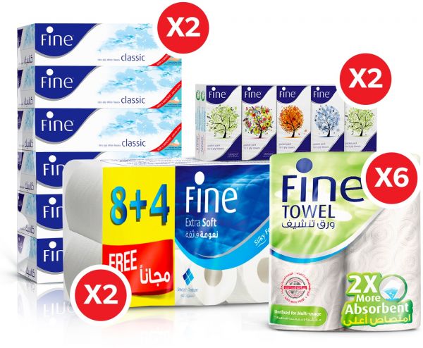 - FINE Toilet Paper Extra Soft 200 Sheets 2 Ply / Pack of 12 Rolls X 2