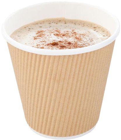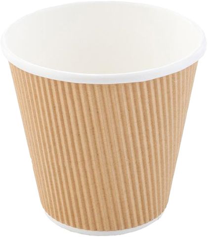8 ounce kraft disposable ripple wall coffee and tea cut. There is one lid for three differently sized cups. These wide kraft brown coffee and tea cups are perfect for any establishment that serves hot drinks. People will love their modern design, especially with their ripple wall. The ripple wall isn't just there for decoration it helps prevent from burning their hands and insulates drinks to keep them hot for longer. These cups are made from paper so they are strong and recyclable.