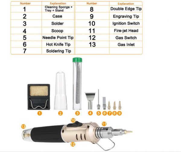 - Can be used as ordinary soldering iron, heat gun or flame gun, very practical.