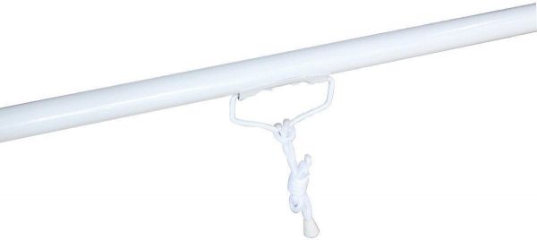 - Steel tube for frame, white plastic theater curtain