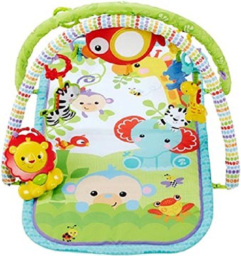 Five linkable toys plus an adorable take-along musical lion with fun sounds and two music modes keep baby busy on a comfy, padded, portable activity play mat with two soft play gym arches overhead. Music plays for up to 10 minutes in long play music mode, and you can rearrange the linkable activity toys to change the experience for baby, every time she plays!