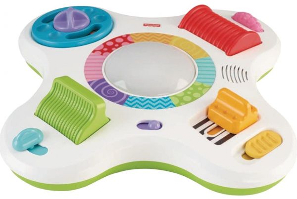 描述:Baby activates music, fun sounds and bright, colorful lights through hands-on activity play. Three different levels of play grow with baby, from Level 1 Explore, to Level 2 Jam-along Music, to Level 3 Game Play. Baby can spin, twist, turn and slide switches, dials and rollers for fun rewards, including lights, music and fun clicking and ratchet sounds.
