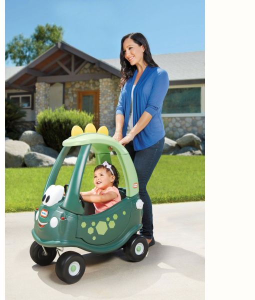 The features are removable floor and handle on back for parent-controlled push rides. Designed with a high seat back and storage in the rear. Includes special features like an ignition switch and an open-and-close gas cap. Cozy rolls on rugged, durable tyres. Front wheels spin 360° and real working horn.
