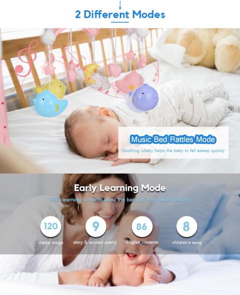 As a new mother, are you troubled by taking care of your child? With this crib music rattles, it will be easy. Wonderful music and gentle lighting will keep your child safe. A rich learning content will allow your child to learn while playing. Listening to music will help teach your baby the rhythm and exercise baby's listening This is a great early learning educational toy. Just buy one for your baby.