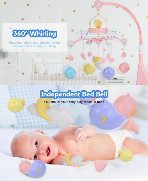 Cradle bell: hook rotates while playing music, you can pause it while playing