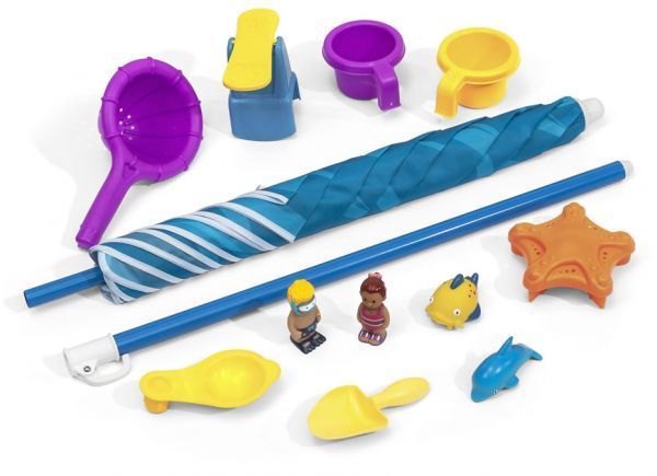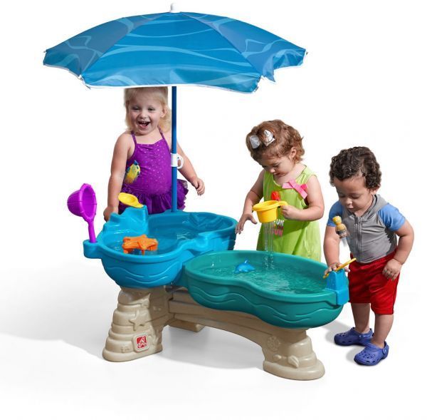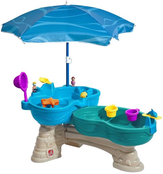 This Step2 water table has a centrally located water spinner that lets your little ones create their own whirlpool. The included squirting water figures add up to the water play fun of your kids. This table includes an umbrella that provides shade to your kids.