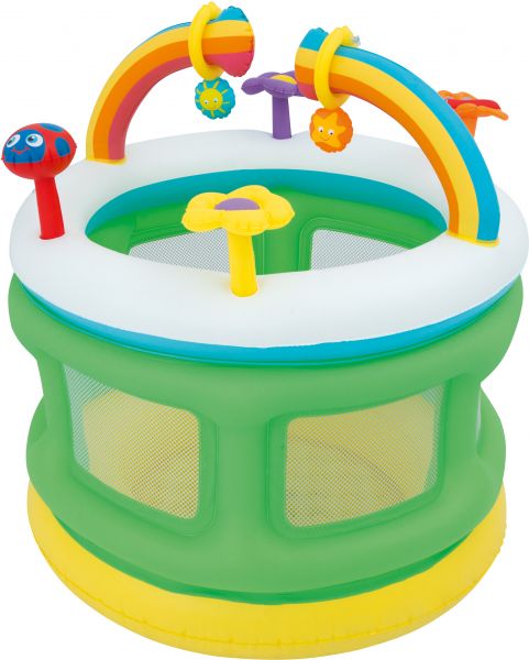 The Bestway Baby Playpen is designed to give your little one a fun, cushioned place to play and pull up to stand. It has a soft floor to help keep little feet happy. This inflatable playpen blows up quickly so you can set it up any time you like. It is lightweight and folds for easy transporting and storage. This foldable playpen is designed for use by toddlers who are at least 1 year old. It is made with bright, vibrant colors and has a smooth, circular shape for extra comfort and safety. The Bestway Baby Playpen has a weight capacity of 66 lbs. It would make a great baby gift for a new parent or a birthday gift for your favorite little one.