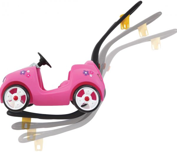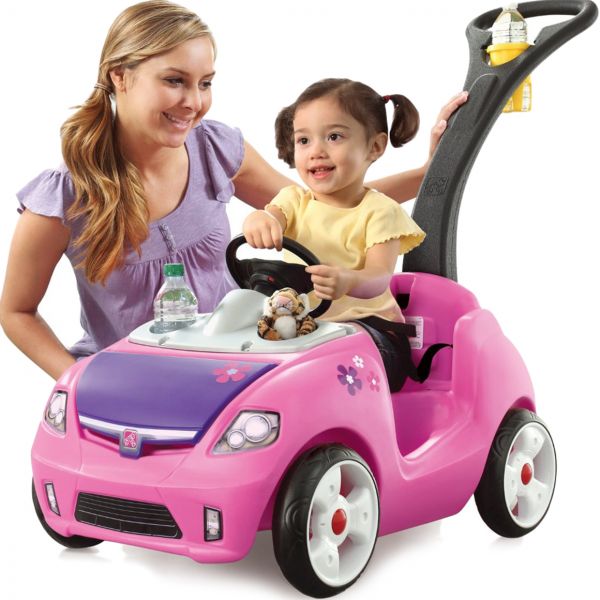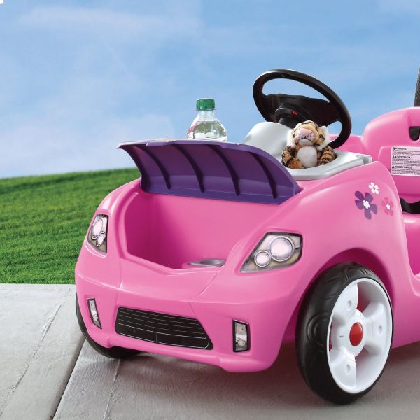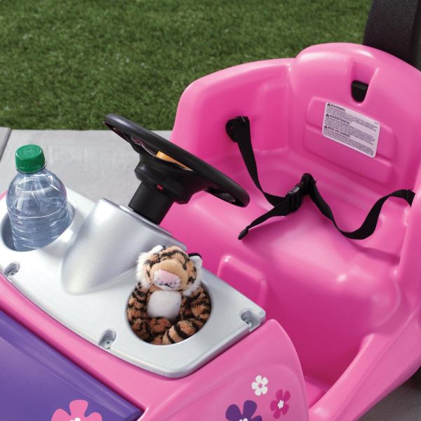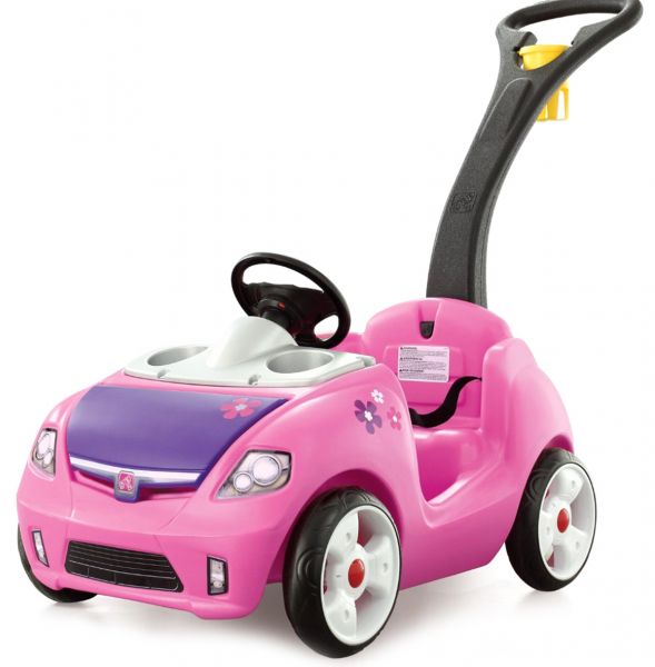 The Step2 Whisper Ride II Buggy – Pink is an updated, roomier version of one of Step2’s best sellers. This cute little machine features a sleek automotive design with soft poly wheels to help provide a smooth, quiet ride. It also features storage under the hood, as well as a handle that can be folded underneath the body to help simplify transport and storage.