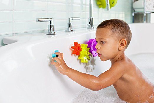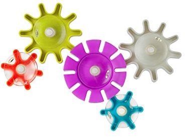 Gears + oil = a mess. Gears + water = hours of bath time fun. COGS suction to the bath walls and spin when water is poured over them. Positioned just right, they work like a fine-tuned (though not well-oiled) machine. Use COGS with PIPES Bath Toys for maximum fun. Gear heads unite!