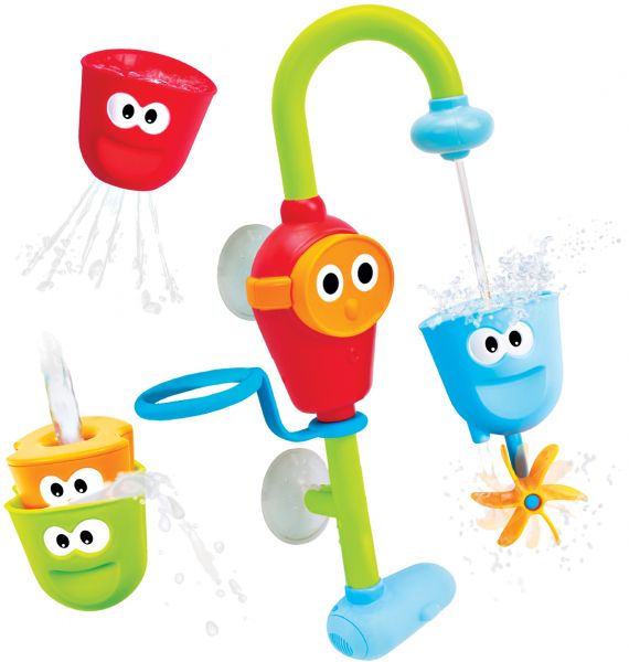 - Automatic play spout that attaches to the tub and offers a variety of ways to play and experiment with water