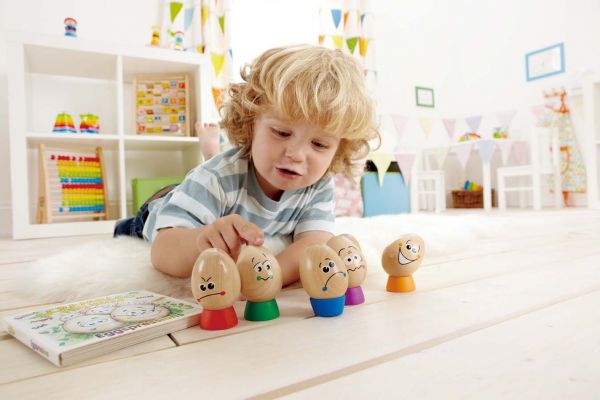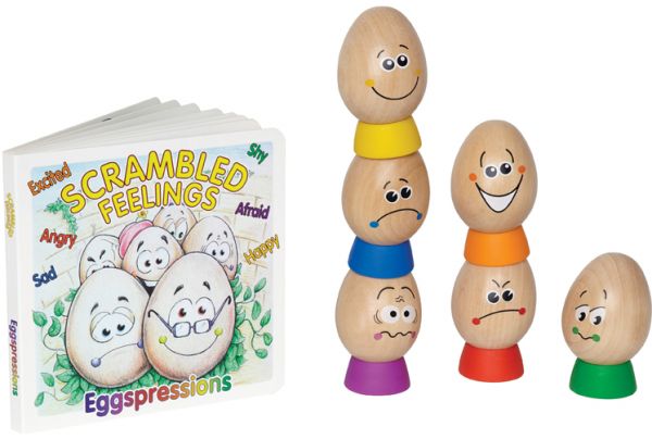 Unique egg-heads help children learn to identify and express their feelings in a fun and funny way. Idea book included.