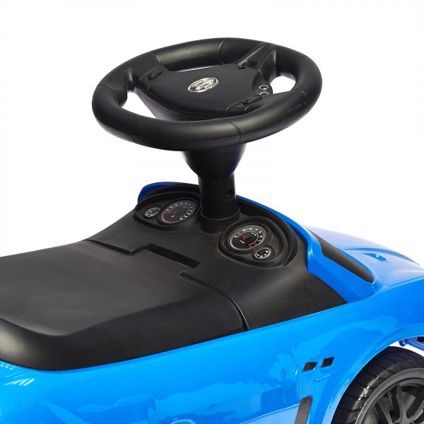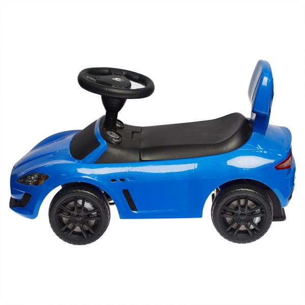 This little adorable yet mean looking Maserati shaped push car is a great and fun toy for the younglings. Prop them on and watch as they giddy themselves riding around on this stylish push car. The non-scuffing tires work well on any surface. As an added feature, the steering wheel is equipped with buttons for a car horn and baby beats; melodies that your child can jam to as they ride down the mean streets of your home's corridors.