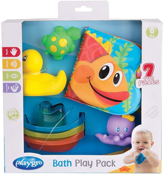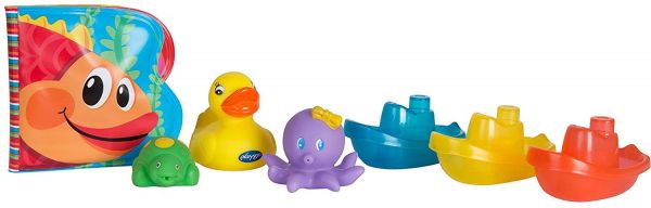 7 Piece Set For Large set with lots of colorful bath toys, which can capture different kinds of senses to make and promote in their development makes an ideal gift set 7 piece set consists of: 3 (Turtle, Large, octopus), 3 colorful boats, 1 waterproof story book, the Fun and quirky colorful bath animals can water Verspritzen and swimming on the water the water-resistant, colorful book with a built-in squeaker offers the 8 sides lots of pictures to stories The Boats can be stacked to a Turnchoen and the holes in the chimney encourage babies to play with water. Of course, you can also see later in the sandbox guarantees hours of fun.