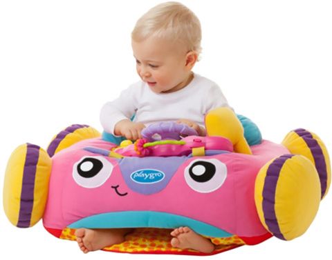 Beep beep sit and play in the playgro music and lights comfy car. This plush car packed with musical features encourages motor skill development and imaginative play. Baby will love the sound of the horn beeping, the indicator clicking and the rattling balls spinning. This adorable baby car also comes with a side mirror to help baby learn about reflections. This stationary car is a safe place to play, perfect for baby to practice sitting up or for older babies to sit up and play in comfort and style. Easily detach and attach the music and lights driver toy to prams, strollers or capsules for another way to play on the go.