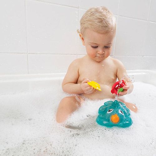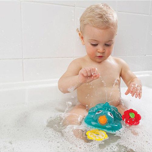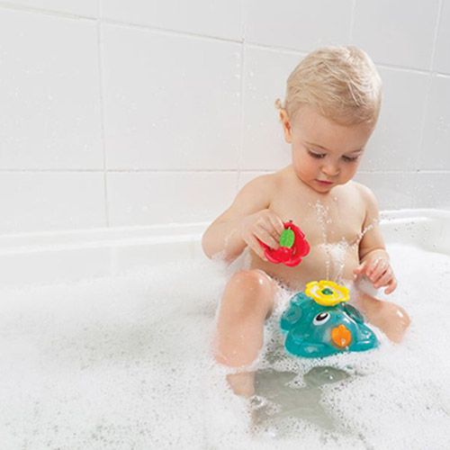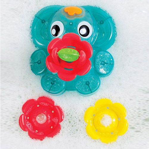 Splish splash fun with the light up squirty bath fountain. The suction base easily attaches to the side of the bath. Baby can watch engaging colors spin around & around when water poured on them. Two squirties are included for water play, with an array of different holes for water to pour through.