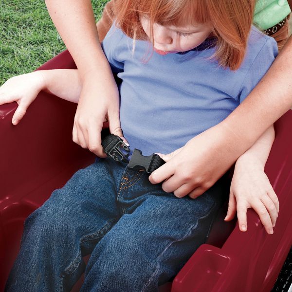 This Step2 ride-on toy is an excellent choice for holding snacks and drinks. It has two molded-in cup holders and a snack compartment, so your kids can enjoy drinks or cookies while they are on the move. Furthermore, the two molded-in contoured seats of this toy are equipped with seat belts for added safety of your kids. Lastly, the handle of this toy folds nice underneath, thereby making storage more convenient.