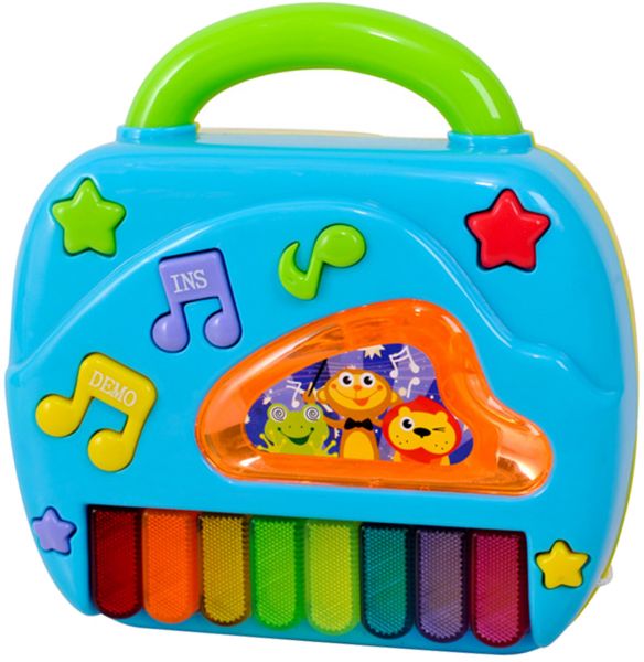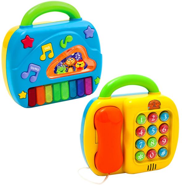 Amusing 2-in-1 telephone-piano with lights, buttons and a variety of sounds which will quickly capture your baby's attention. The colored buttons incorporate buttons so that your baby will soon recognize them. The toy includes a practical carrying handle. Encourages language development, discovery & exploration. One side is a lovely phone, there are 12 number keys above, each press a number will have different music; the other side, is the keyboard, press each key will be issued a beautiful music. Watching the baby while playing while laughing, as parents you must be very happy it