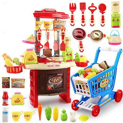 * CONTAINS- TOY FOOD AND STAND SHOPPING TROLLEY