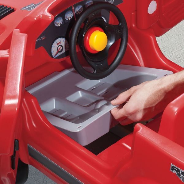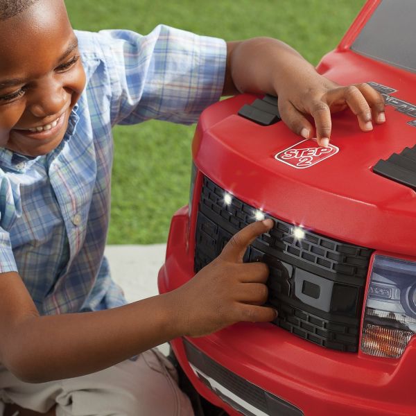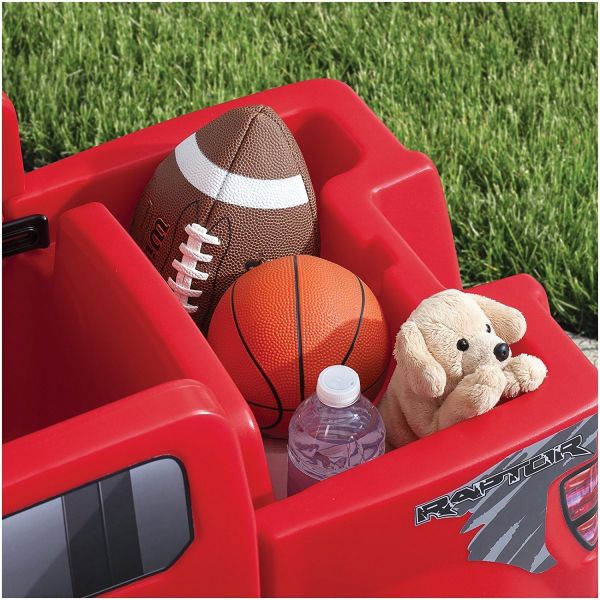 This Step2 Ford Raptor provides your kids with realistic driving fun. It is equipped with working lights that can be turned on and off by the hidden button located on the front grille. Furthermore, the trunk storage allows you little one to keep all the snacks, toys, and drinks required for a long neighborhood walk. This truck features a steering wheel with honking horn that encourages your little one to pretend to steer like a real road driver. All the more, your kids will love to clean the shiny hubcaps and realistic tires of this truck.