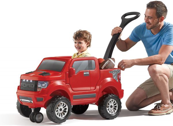 The Step2 840700 2-in-1 Ford Raptor is the perfect choice for your little driver. It can be converted from a push buggy to a kid-powered riding toy. This durable ford truck is one of the coolest ride-on toys available in the market. It is packed with realistic features that allow you little rider to enjoy hours of pretend play. You child will love the working lights, two working doors, rugged tires, and steering wheel of this truck. Furthermore, the push handle and floorboard can be removed when you turn this truck into a foot to floor ride-on toy. The truck bed of this toy can be used for storing snacks or little treasures of your kid.