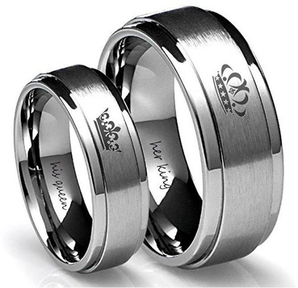 Stainless Steel Fashion Her King, His Queen Shining Couple Ring Set as Gift For Man and Women