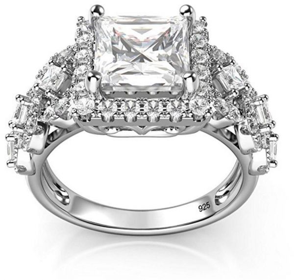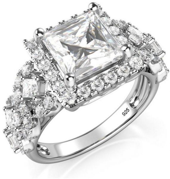 描述:Sterling Silver 925 Ring Princess Cut Cubic Zirconia Halo Engagement Ring:
