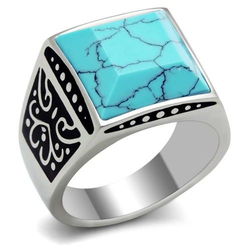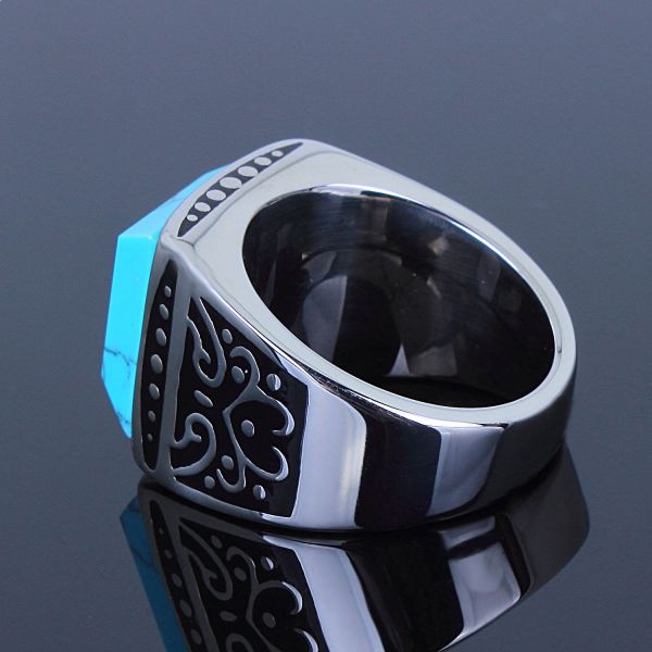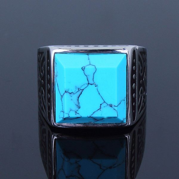 Turquoise Men Ring High Polish Stainless Steel Size 9