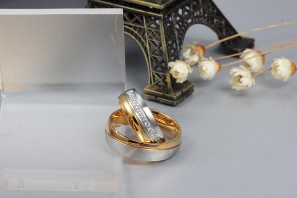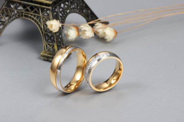 18K Gold Plated Titanium Steel Shining Diamond Wedding Love Couple Ring Set Female us7 Male us8 cr16