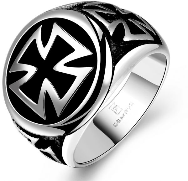Fahion Men Vintage Style cross Chrome Ring - Size US10