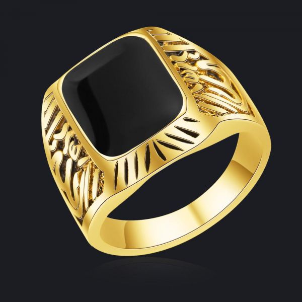 JewelryC J171030AQ Vintage Muslim Allah Allah Black Square Drop Ring for men