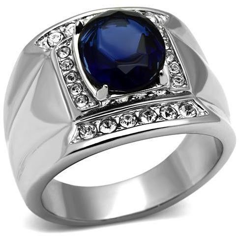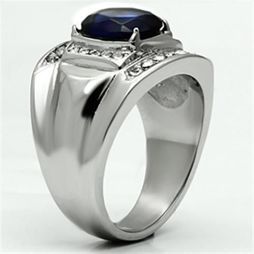 Mens Dark Blue Sapphire Stainless Steel Ring.