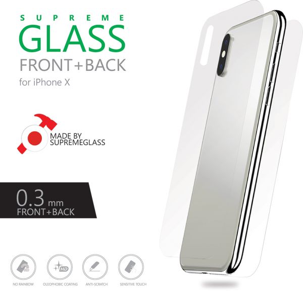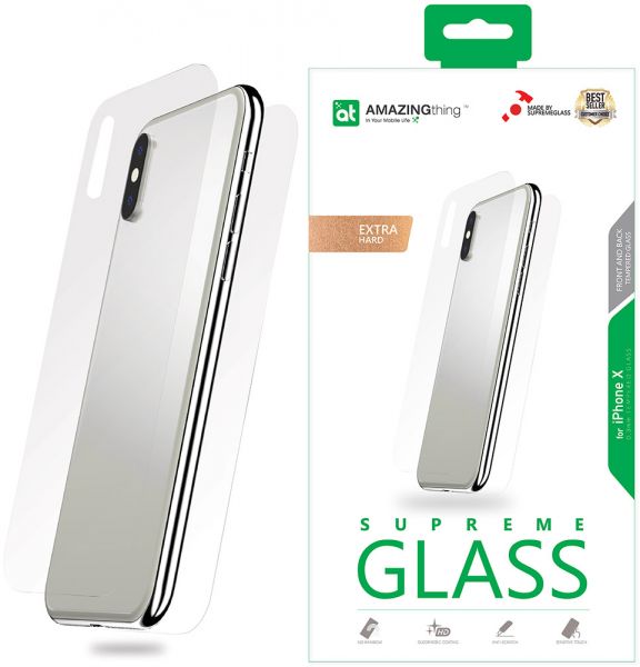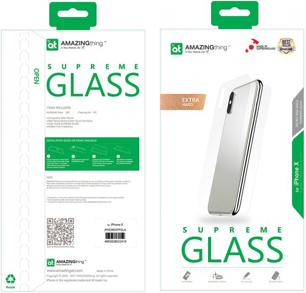 AmazingThing Supreme Glass Extra hard FRONT and BACK Tempered Glass Screen and BACK Protectors for the Apple iPhone X are only 0.3mm thick but feature a high level of 9H Hardness rating to Protect your screen as well as the Back Glass