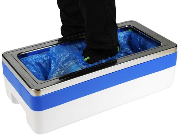 - This automatic shoe cover dispenser is portable and lightweight so you can keep by the door to use at the workplace or take it with you if you need to use it at a job site. It is designed to quickly and efficiently cover the shoes of all your workers and guests so everyone can spend more time doing productive business activities.