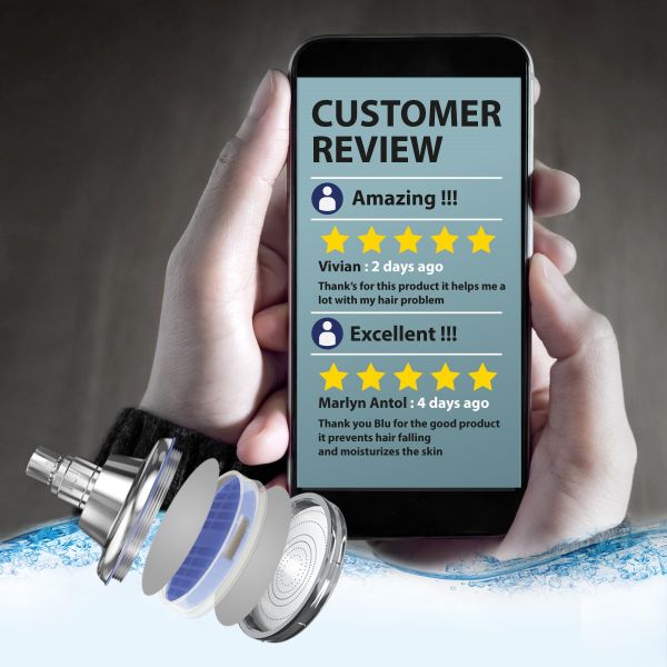 “Your health is your wealth” The blu Ionic Shower Filter 7- Stage Shower Filtration System with NMC Filter removes 99.99% of bacteria & solid impurities from your shower water to offer a safe shower experience for you & your family. Why choose the blu Ionic Shower Filter? · Your Health’s Guardian If you’ve been wondering how to combat all the icky harmful things lingering in your shower water, but are yet to find the ultimate vanquisher, look no further! The blu Ionic Shower Filter uses hi-tech filters to efficiently eliminate up to 99.99% of the harmful pollutants & malicious bacteria in your shower water. Improving the quality of your shower water & safe guarding your health is its top priority! · Natural Moisturizer Here’s some food for thought, if you want to take care of your skin, you should know that there is a right & wrong way to take a shower. The blu Ionic Shower Filter’s patented Micro Hydration Technology in water purification penetrates deep into your skin to stimulate your skin cells, keeping your skin moisturized & radiant. That’s the right way! · Hair’s Superhero We all don’t want to chase our hair-locks away, we want them to stay. That’s exactly what the blu Ionic Shower Filter will help you do. Its advanced technology in water filtration removes 99.99% of harmful pollutants including Chlorine & other harsh soluble metals such as Lead, Cadmium, & Chromium. Showering in purified water will help you keep your hair soft & shinny. Let it glow! · Vitality Booster A healthy shower is sure to improve your overall wellbeing. The blu Ionic shower filter cares for your body by removing harmful substances that you may otherwise be absorbing directly into your blood stream. Your body can absorb an equivalent of 8 to 10 glasses of chlorinated water during a 10-minute shower. A mind-blowing fact! · Zen Master A good shower can help you rejuvenate your body & mind. The blu Ionic Shower Filter’s unique design showcases 244 perforations that generate a soft rainfall jet stream of water. By breaking the water droplets into a smaller size, it ionizes the surrounding air & generates an abundance of healthy negative ions, which help you relax & reenergize. It’s what’s called the Lenard’s Effect! · Earth Saver Just when you though it can’t give more back it does! The Ionic shower filter loves your health & the environment’s health too. Its water saving & energy saving features help you save up to 50% of shower water consumption while reducing CO2 emissions. Eco-Friendly is its middle name! · Pet Lover Who said only humans should enjoy the great benefits of filtered shower water? By removing 99.99% of the harmful pollutants in your shower water the blu Ionic Shower Filters helps you safe guard the health of your precious pets too. A good shower guarantees some wagging tails!