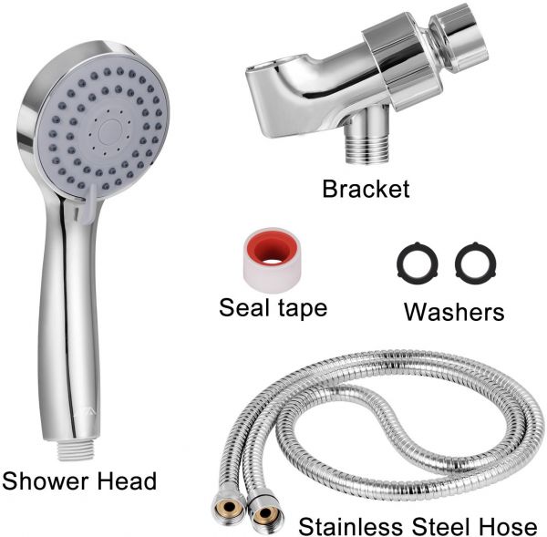 DURABLE MATERIAL: Made of chrome-finish ABS, which will not go rusted. Stainless steel hose with brass connection nut features leak and corrosion resistance. Ergonomic grip handle is comfortable and lightweight.