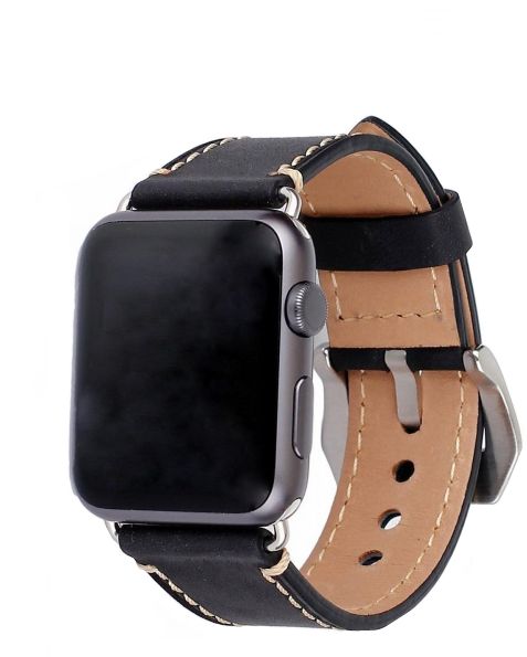 Exclusive chic Leather Watch Band Series 1 2 3 Sport iwatch case For Smart Watch 42 mm-Black