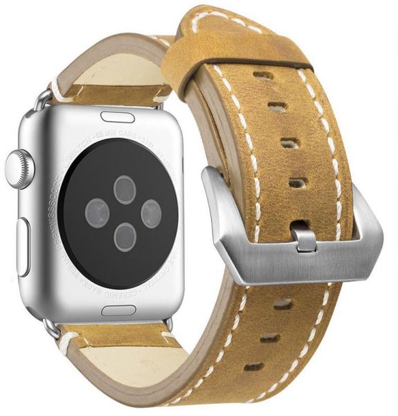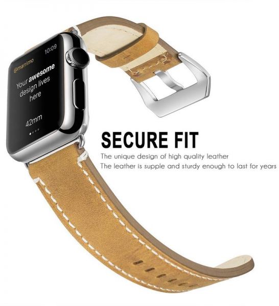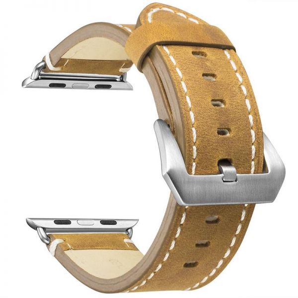 Leather Bands Compatible Apple Watch Band Replacement Wristband Sport Strap Iwatch Nike+, Series 4 3 2 1, Edition Stainless Steel Buckle 44MM BROWN