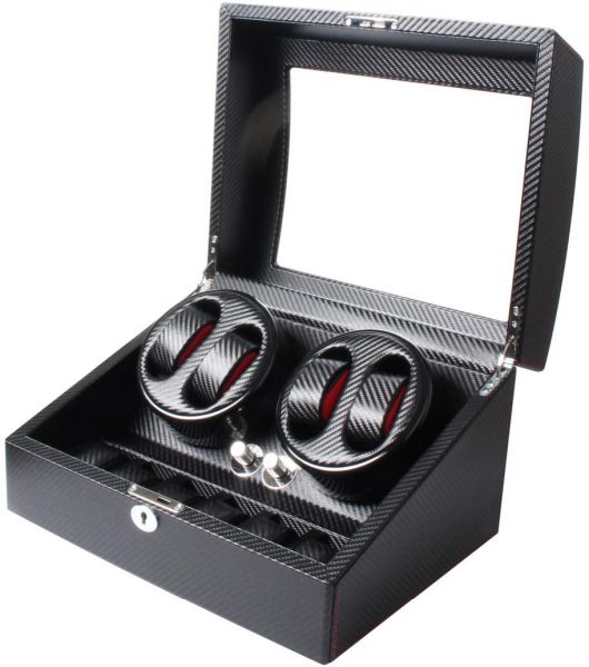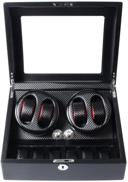 Carbonfibre Finish Automatic Watch Winder 4 Plus 6 Piece Storage
