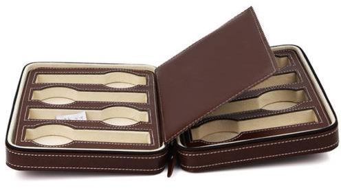 Leather Portable Watch Travel Case Brown Zipper Book 8 Slots Box