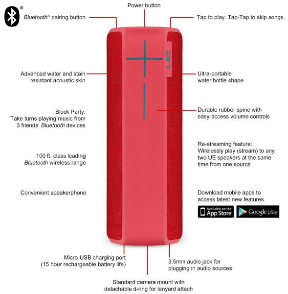 UE Boom 2 wireless Bluetooth speaker offers a feet tapping, head banging sound, which spreads in all directions. This UE portable speaker is very light and sturdy. There is no better way to celebrate festivals, specials events, and successes than music. Grab the compact and lightweight UE Boom 2 Wireless Bluetooth Speaker to mark various occasions with loud and crisp sounds. It uses high fidelity speakers with 360 degrees sound effect so that every song comes out crystal clear with pounding beats and revolves in all directions. You can keep your connected devices in a far away safe place while you engage in crazy acts, rolling in mud or jumping in pools with the speaker in your hand. It has a sturdy make that enables it to withstand dirt, water, and rough handling without showing any signs of damage.