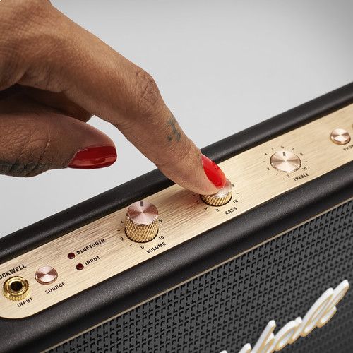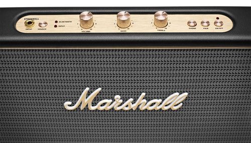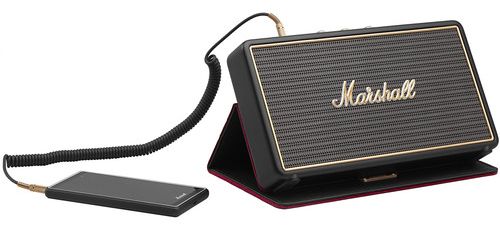 Take the show on the road with the Stockwell Speaker in black from Marshall. This portable device features dual 2.25"" woofers and two-channel class-D amplifiers, making it one of the loudest portable speakers in its class—delivering up to 25W RMS. The Stockwell Speaker has Bluetooth 4.0 connectivity built-in, so you can stream audio from any compatible Bluetooth-enabled device. In case you don't have a Bluetooth device handy, the Stockwell is also equipped with a 3.5mm port for lining-in audio from other compatible devices.