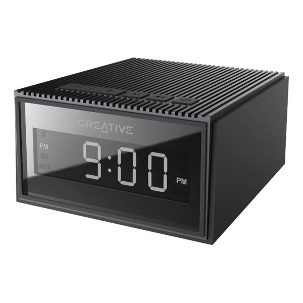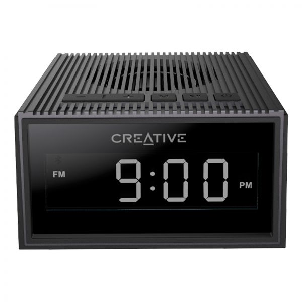 Creative Chrono is both a powerful splashproof Bluetooth speaker and a radio alarm clock. When it is placed horizontally, users can use the Chrono as an alarm clock radio. In this mode, the Chrono features an oversized LED digital clock display and a built-in FM tuner with station presets. Also, tuning the FM radio and switching between different modes are made even more convenient as the Sound Blaster Connect app lets users do all this at their fingertips - from their smartphone or tablet. But as is the case with Creative products, the Chrono delights with added functionality: it is also a powerful IPX5 splashproof Bluetooth speaker when placed horizontally or flipped upright. The Chrono features Bluetooth for wireless connection to smartphones and tablets, an in-house tuned full-range driver with passive radiator for big sound and impressive bass, a speakerphone built-in for calls with your smartphone, and has an 8-hour battery life.