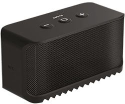 Despite what your eyes might tell you, the Jabra Solemate™ Mini packs two powerful speakers and a battery which gives up to 8 hours of playing time. Play your music wirelessly or use the handy cord in the sole.