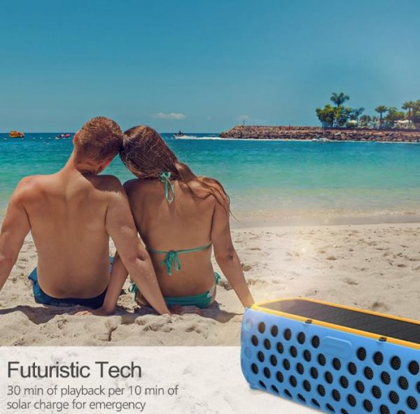 Futuristic Tech: Built-in latest solar panel to charge 2500mAh lithium battery, solar charging for 10 mins, this solar charging bluetooth speaker can work for 30 mins for emergency, which is easier to regain more power for your speaker when you participate in an outdoor activity like BBQ, fishing, camping, riding, etc. in sun.